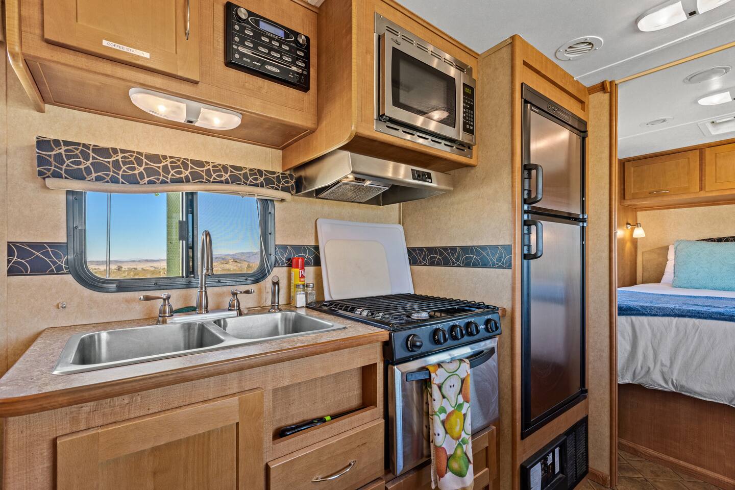 This is your chance to experience the beauty of Joshua Tree in the comfort of your own RV. Casa Pequeña is surrounded by stunning desert views in an enclosed campground located in the heart of Joshua Tree, and is just a short drive away from the park. With all of the luxury glamping amenities, you can easily settle in and make yourself at home. Whether you’re a solo traveler on an adventure or a couple on a romantic escape, Casa Pequeña is sure to fit your needs and be a memorable experience. [