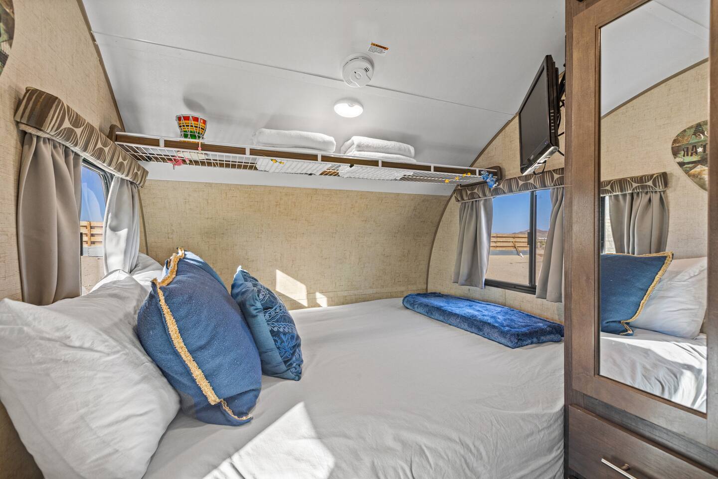 Lil' Miss Daisy is perfect for those who want to explore the great outdoors with the comforts of home. With its cozy interior, creative décor, and modern amenities, this fully equipped RV ensures that you will have a memorable and comfortable experience. Located in the center of Joshua Tree on enclosed campgrounds, it has everything you need for a place to call home while exploring the desert or just a cozy spot to rest for the night. Ideal for solo travelers, couples, and friends.