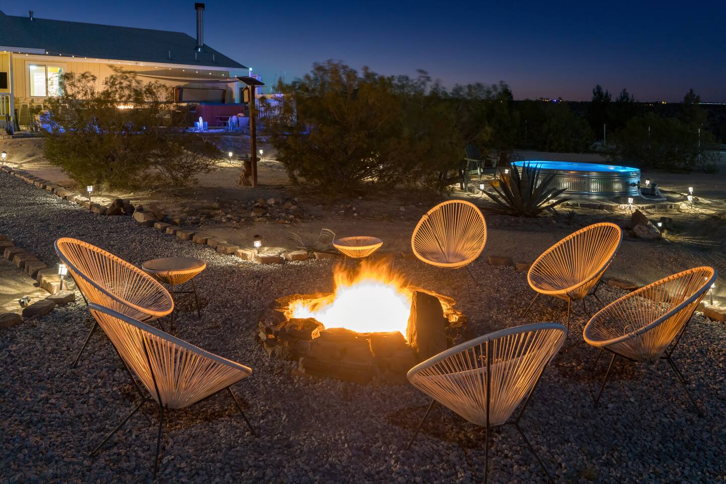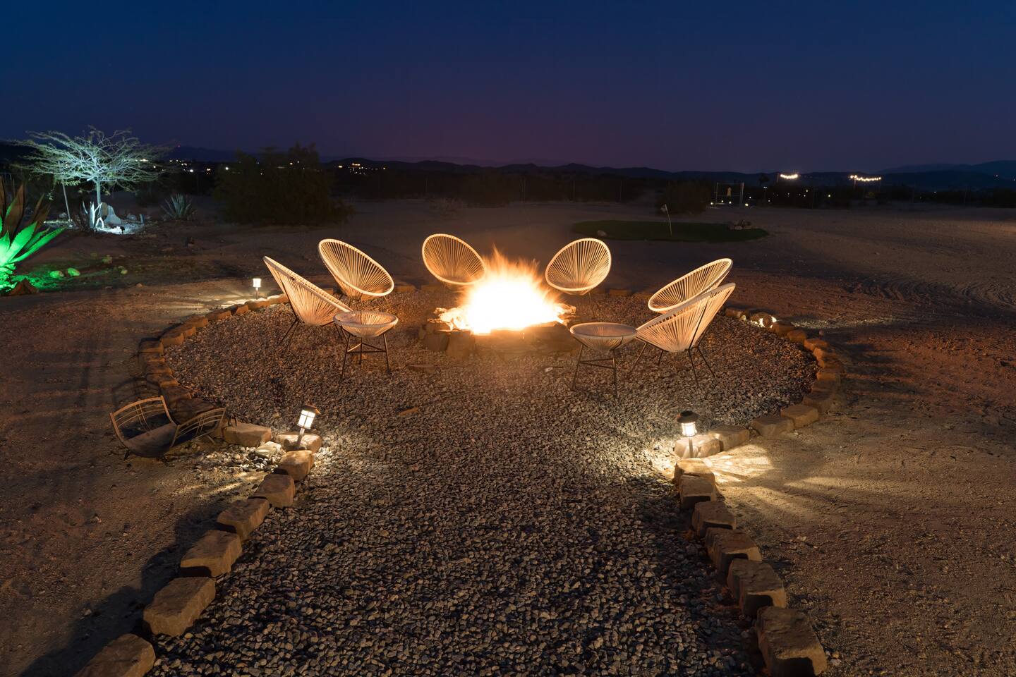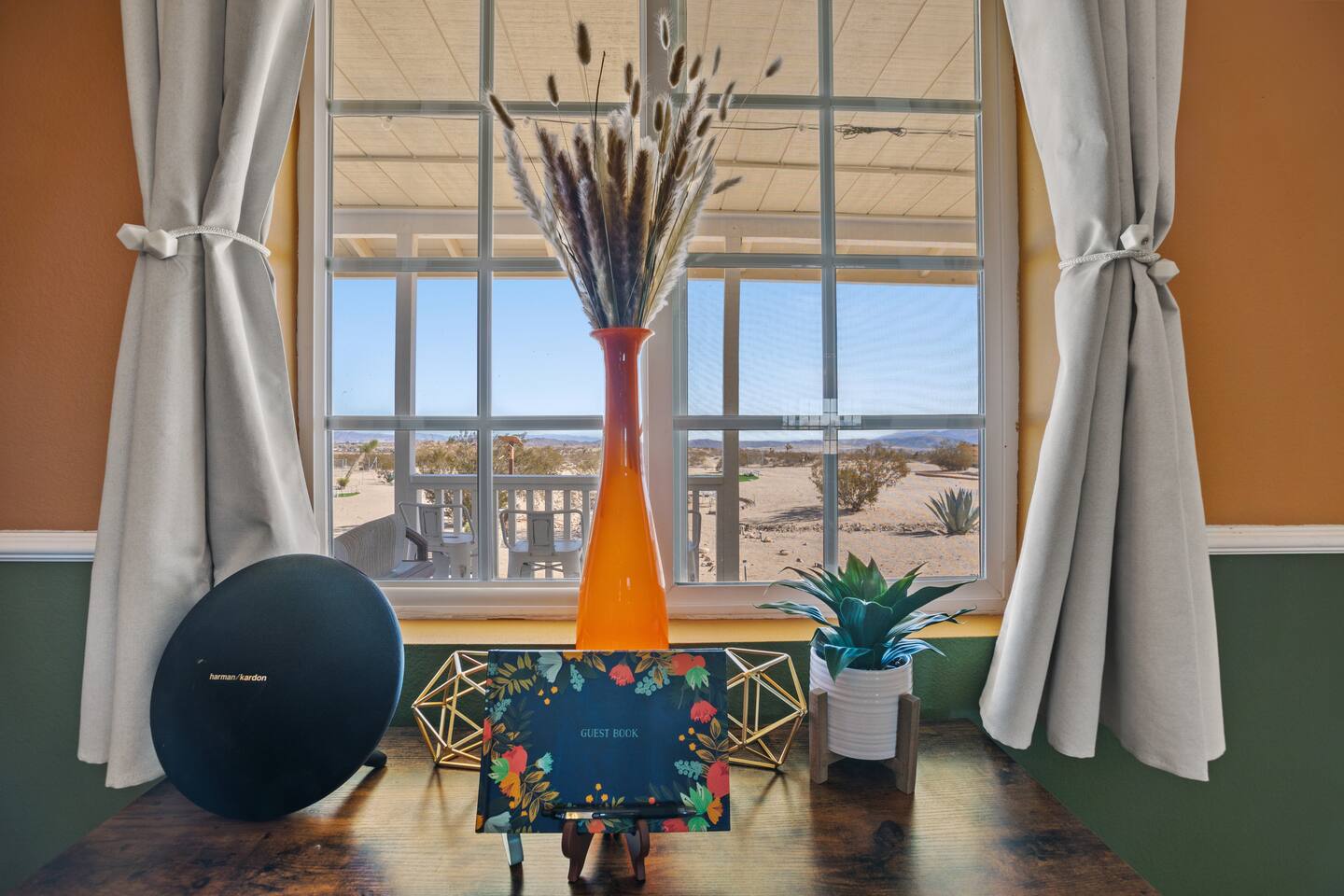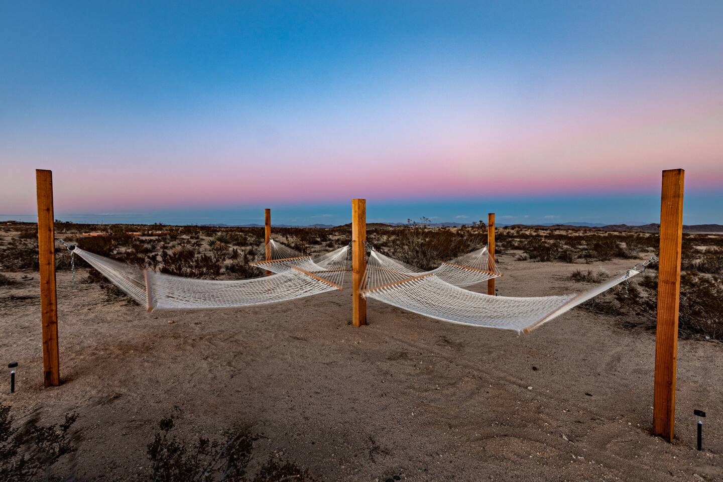 Unwind with the comforts of home in the private, beautiful vastness of the Joshua Tree desert. Retreat to the patio to soak in the hot tub, BBQ with the family, or play horseshoes at sunset. Enjoy making memories under the most epic sky while taking in the mesmerizing views of the Copper Mountains to the east, JT National Park to the south, and the snow-capped Big Bear Mountains to the west. You’ll feel secluded yet be right in the middle of everything that rules in the desert.