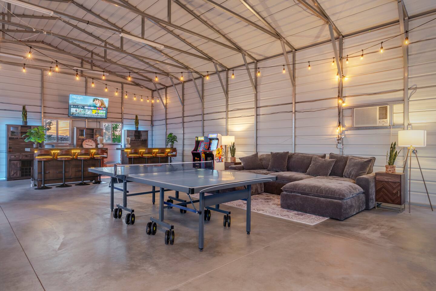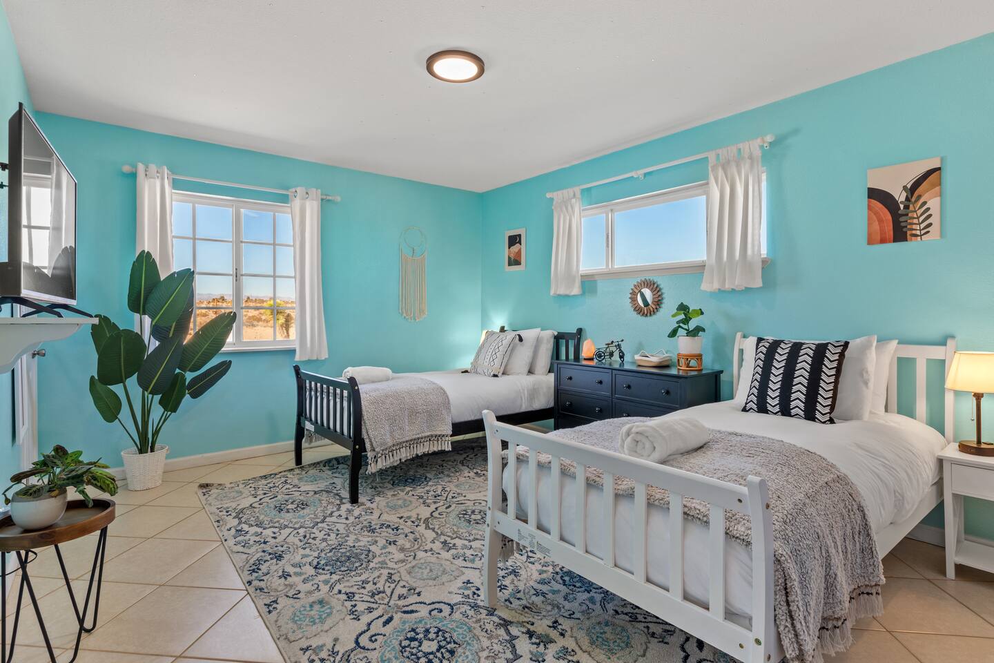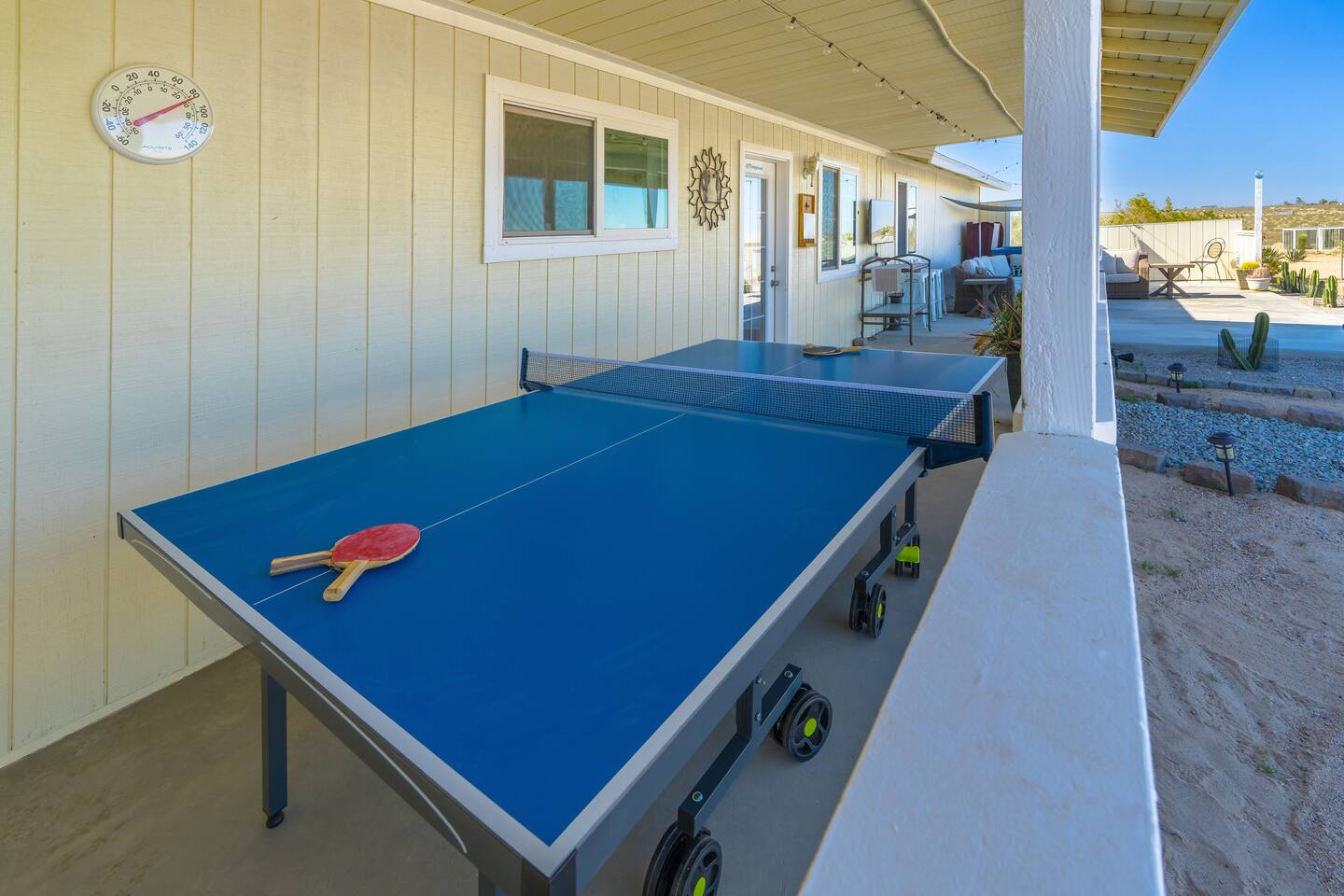 Unwind with the comforts of home in the private, beautiful vastness of the Joshua Tree desert. Retreat to the patio to soak in the hot tub, BBQ with the family, or play horseshoes at sunset. Enjoy making memories under the most epic sky while taking in the mesmerizing views of the Copper Mountains to the east, JT National Park to the south, and the snow-capped Big Bear Mountains to the west. You’ll feel secluded yet be right in the middle of everything that rules in the desert.