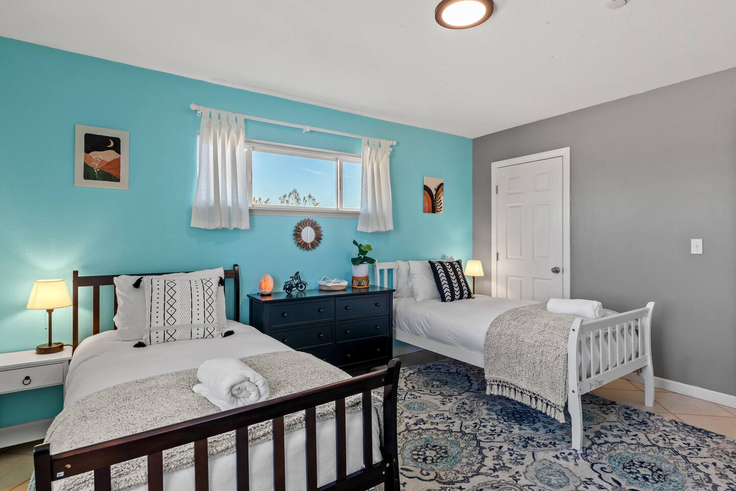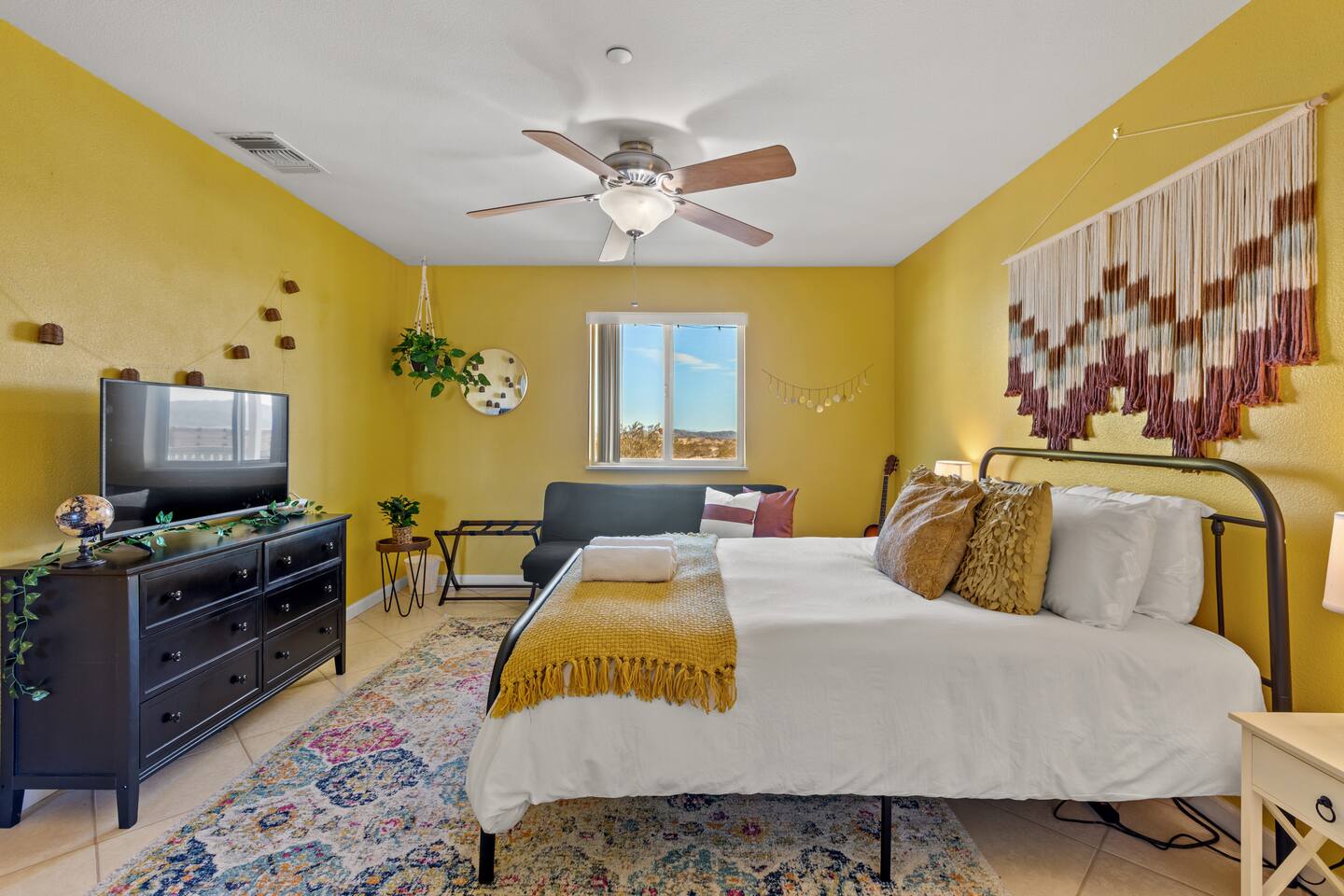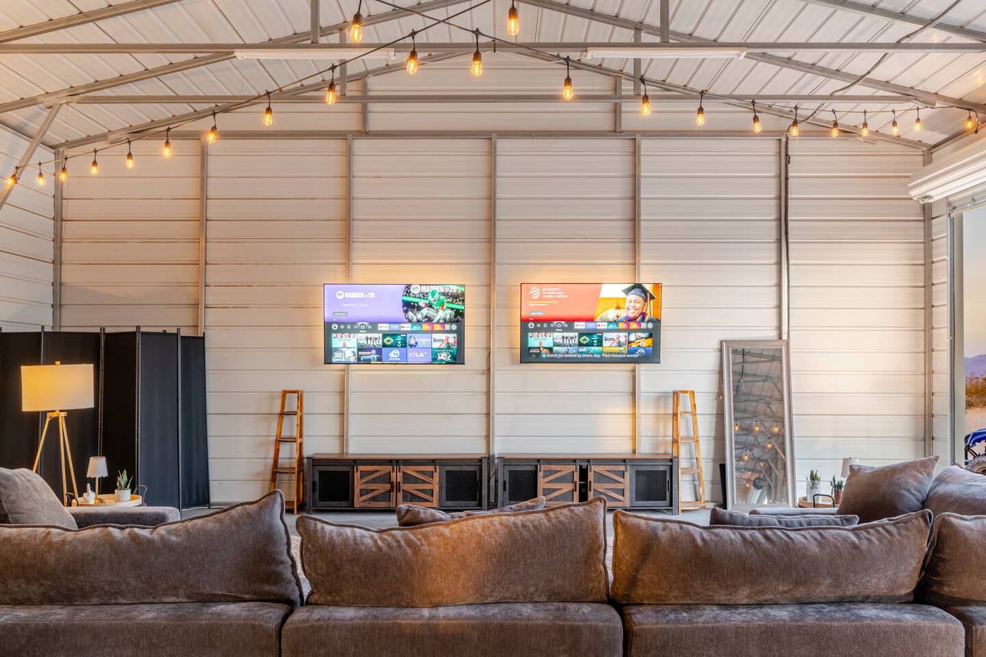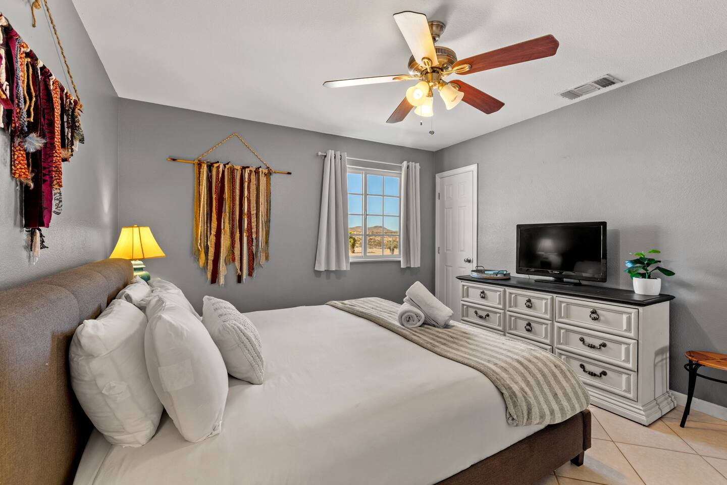 Unwind with the comforts of home in the private, beautiful vastness of the Joshua Tree desert. Retreat to the patio to soak in the hot tub, BBQ with the family, or play horseshoes at sunset. Enjoy making memories under the most epic sky while taking in the mesmerizing views of the Copper Mountains to the east, JT National Park to the south, and the snow-capped Big Bear Mountains to the west. You’ll feel secluded yet be right in the middle of everything that rules in the desert.